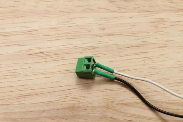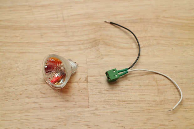 Unas pocas pulgadas de cable a un bloque de terminales de soldadura. Se trata de la fijación de la lámpara.
