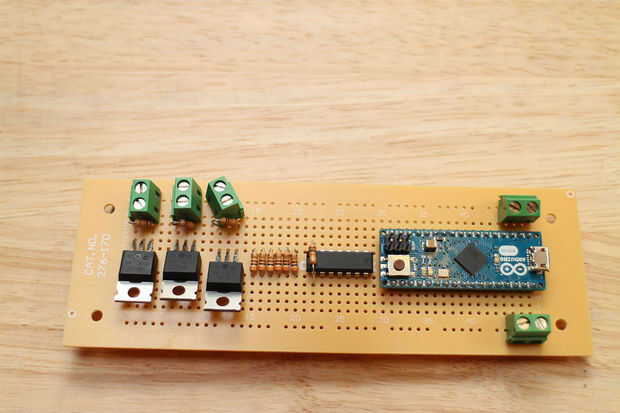 Colocar el MOSFET de la placa con el desagüe (el pin medio) alineado con el bloque terminal.