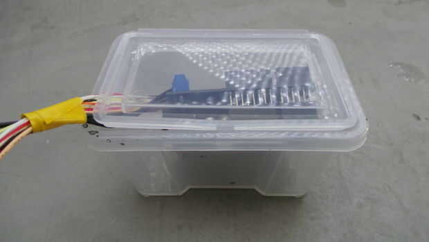 Coloque el tanque entero en un soporte (yo usé poliestireno de 1 cm de espesor) y deslice algunos LED debajo (actualmente yo estoy todavía colocar en el sistema de iluminación LED-esta es una tira de ikea, funcionará cualquier sistema de iluminación).
