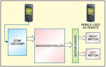 Convencionalmente, robots controlados por wireless utilizan circuitos RF, que tienen los inconvenientes de la gama de trabajo limitada, gama de frecuencia limitados y control limitado. Uso de un teléfono móvil para el control robótico puede superar estas limitaciones. Ofrece las ventajas de control robusto, tan grande como el área de cobertura del proveedor del servicio, sin interferencias con otros controladores y hasta doce de gama de trabajo. Aunque el aspecto y las capacidades de los robots varían enormemente, todos los robots comparten las características de una estructura mecánica, movible, bajo alguna forma de control. El control del robot consiste en tres fases: recepción, transformación y acción. Generalmente, los preceptores son sensores montados en el robot, procesamiento es realizado por el procesador o microcontrolador a bordo, y la tarea (acción) se realiza mediante motores o con algunos otros actuadores.