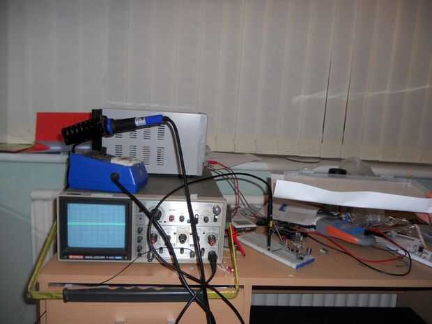 Para probarlo, puede usar un osciloscopio o un voltímetro, utilicé un osciloscopio para fácil de fotografiar.