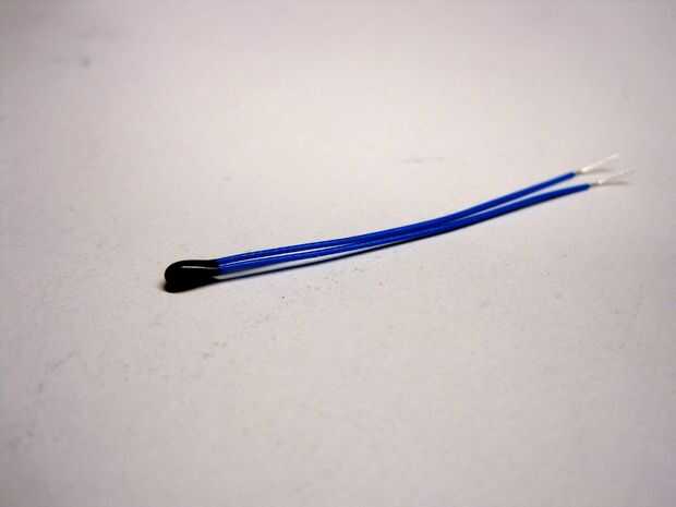 Un termistor es un resistor dependiente de la temperatura; tiene una resistencia específica a temperatura ambiente, y su resistencia varía en una proporción conocida con la temperatura del componente. En nuestro caso, hemos seleccionado una NTC o termistores de coeficiente de temperatura negativo; la resistencia de la pieza será disminuir como la temperatura aumenta.