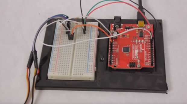Usé el breakout de acelerómetro de tres ejes ADXL345 de Sparkfun. Tienen un gran tutorial con todo que lo necesario para conseguir esta cosa en un Arduino, incluyendo código y diagrama de cableado. Utiliza el Sparkfun "Código Arduino básico", pero sólo lo modificó para proporcionar sólo los datos desde el eje x del acelerómetro.