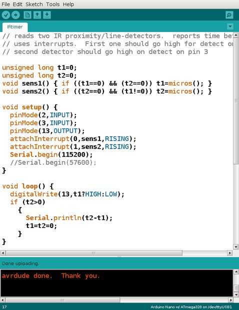 Cuando el sensor atado D3 detecta un objeto, este tiempo se registra.