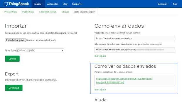 Dessa forma cada vez o era programa executado, todo os mortajas enviados pelo Edison poderiam ser acessados através de enlace disponibilizado ningún sitio ThingSpeak.