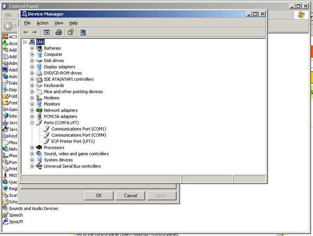 Se muestra una lista de puertos COM en el sistema. He visto el dispositivo aparece como COM 3 y 4, pero variará según el sistema.