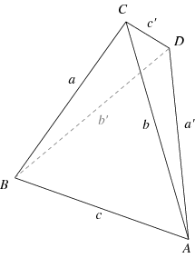 Un tetraedro isósceles es, por definición, un Poliedro de cuatro lados que son congruentes, por lo tanto, iguales en tamaño. En lugar de construir la forma usual mediante la elaboración de cuatro triángulos isósceles iguales uno tras otro, el cuarto lado se hará utilizando los dos triángulos de la derecha formados por plegamiento en cada lado de la imagen.