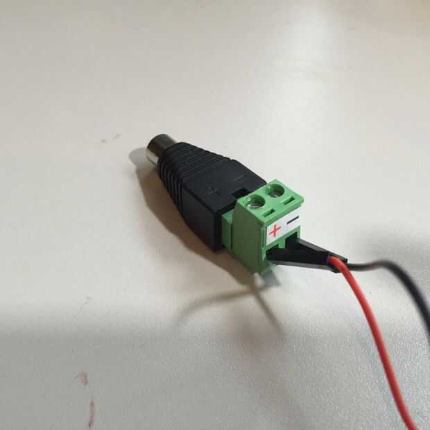Empalmador entre powersource y barreljack un barreljack (2 hilos) para conectar el arduino también encendido sin una computadora.