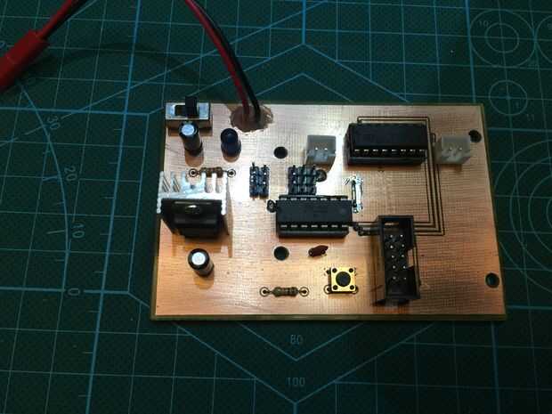 Después de soldar la vía, protegido la capa superior cobre utilizando un spray protector transparente. Después de soldar los componentes, usé el mismo spray para proteger la capa de fondo cobre. También usé pegamento caliente en la base de los alambres para reforzar sus fuerzas mecánicas.
