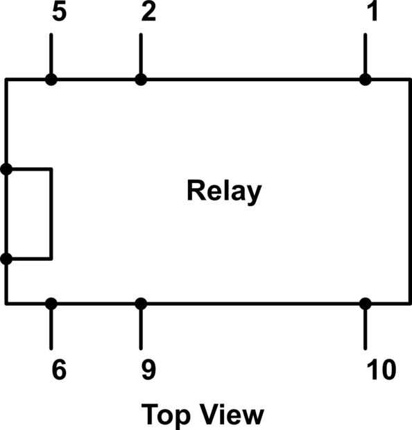 De acuerdo con el diagrama para el relé, los pines 2 y 9 representan la bobina (nota que no es la polaridad de la bobina). Los pines 1 y 10 conectan el interruptor. En mi configuración, aquí están las conexiones: