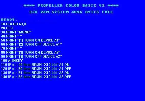 Una vez que se ejecuta este programa, usted tendrá control sobre dos X10 diferentes dispositivos conectados pulsando las teclas 1-4.