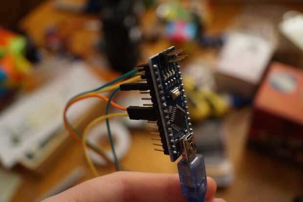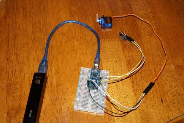 Usando el macho a los cables de puente mujer, conecte los cables del servo Arduino. El cable marrón debe ir a GND, rojo para 5V y la naranja (que llevará la señal) a D5.