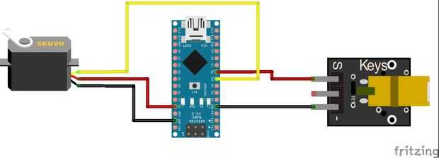 Usando los cables de puente a hembra, conecte el módulo láser a Arduino. El pin más cercano al "-" debe ir a GND y el pin más cercano a la "S" debe ir a D6. Hay un pin en el centro que no usaremos en este proyecto.