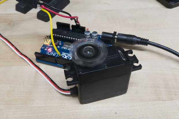 El motor está conectado a un Arduino, y se utiliza un código de barra simple: