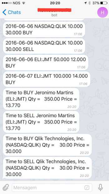 Se envía un mensaje de telegrama para avisar al usuario que es el momento de comprar o vender una acción