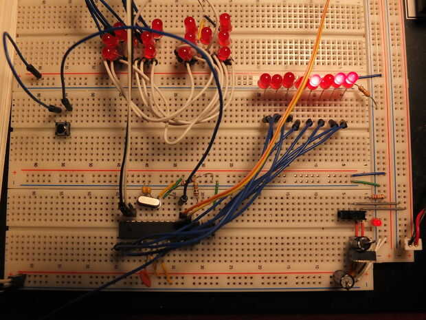 Así, por ahora, la forma en que funciona es mantenga pulsada una tecla, y pulse el botón activar al ADC, y luego dejar ir y que el valor binario del botón que empuja se mostrará en el analizador.