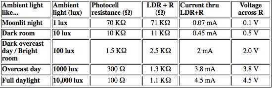 Es decir, el voltaje es proporcional al inverso de la resistencia de la fotocélula que es, a su vez, inversamente proporcional a los niveles de luz