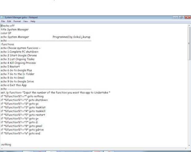 1. Guarde el archivo como System_manager.bat en el escritorio