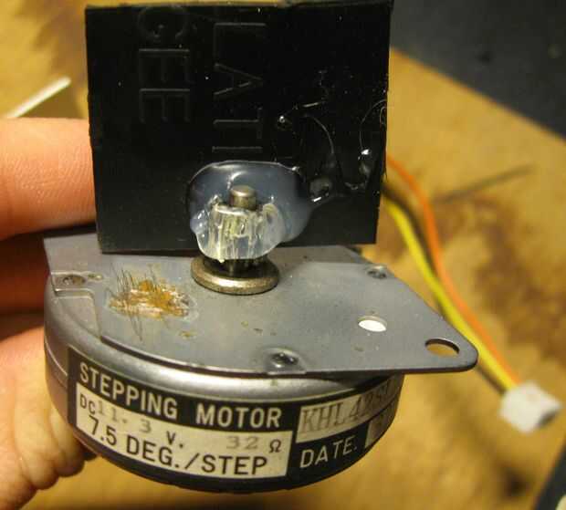 Una vez que el paso a paso va, conecte el CD al motor. (, Una vez más, utilicé pegamento caliente)