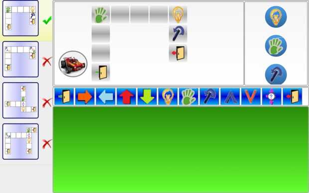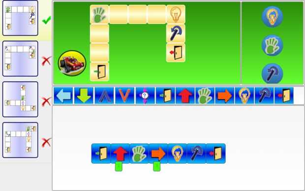 La segunda tarea contiene dos células lógicas, que piden los niños para organizar bloques lógicos y activar los sensores correctamente.