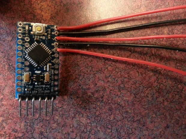 Primero tuve que conectar los cables de calibre 16 5 a Arduino. Usaba patillas 5 a 9 en mi proyecto. También utilicé alambre de color alterno, para hacer las cosas un poco más fácil cuando se trata de conectar LEDs a los pins correctos.