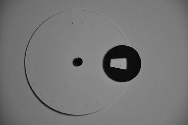 El disco debe ser libre para girar entre las ventanas así que, se marca el borde exterior del disco de spinning y una luna en forma de separador se hace (4,5 mm de grosor en mi caso) para que los dos discos se pueden pegar con mucho espacio para la libre circulación del disco giratorio.