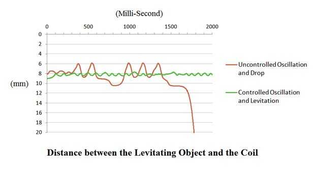 Para controlar la oscilación, unos amortiguadores de vibración (amortiguador) deben agregarse al sistema. Si la distancia entre el objeto levitando y la bobina se mide continuamente y correctamente, unas líneas añadidas el dibujo podrían funcionar así como un regulador virtual sin cualquier material real.