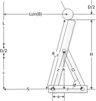 R_c es la suma de s (no grande S de los problemas anteriores) y la longitud del borde del brazo (no mostrado) comenzando en el perno. Como se mencionó en el paso anterior, la longitud real del brazo es diferente que el valor R que se calcularon anteriormente. Además, el ángulo Ï es diferente que el ángulo que ï calculada sólo por encima. Lo siento por cualquier confusión.