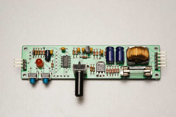 Diseñé el circuito y la PCB para ser tan universal como sea posible, incluyendo todas las opciones posibles. Por ejemplo, puede utilizar DIP (orificio) o versiones SOIC (SMT) del microcontrolador PIC. MOSFET y del inductor se pueden elegir de una variedad de opciones también. Potenciómetro e Interruptores táctiles pueden ser tipos vertical o ángulo recto. Controles que no tienes como IR receptor, potenciómetro y botón telerruptores simplemente pueden omitirse (aunque usted debe tener al menos uno de ellos para utilizar el controlador).