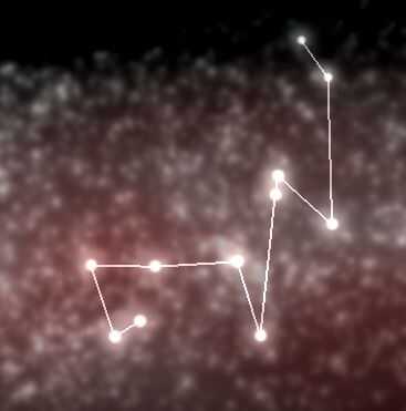 -Puntos (estrellas) conectan sobre todo con estrellas adyacentes o cerca adyacente. Es inusual tener líneas perceptiblemente más de largo.