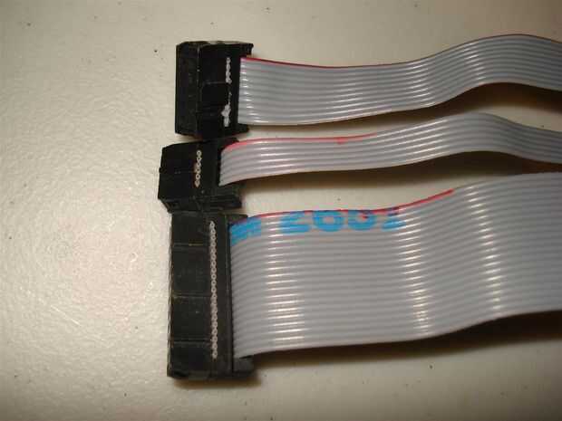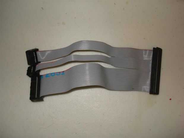 La solución es hacer un monstruo de cable que se conecta a todos los conectores de tres a la vez. Usted necesita encontrar un cable de 40 pines, tales como utilizado para discos duros IDE. El cable de cinta se dividen en secciones de JTAG, ISP y HVPROG y la abrazadera en el enchufe apropiado de IDC tamaño. Para averiguar cuántos hilos por sección, use su cerebro, JTAG es 5 X 2, por lo que necesita 10 cables, así que un corte después de los primeros 10 cables. Pase dos cables porque hay una pequeña brecha (exactamente bastante para pernos de 1 X 2) entre el conector JTAG y ISP, entonces las necesidades conector ISP 6 cables porque es 3 X 2, luego saltar otro dos cables para la brecha entre el ISP y HVPROG, entonces debería ser 20 cables para HVPROG.