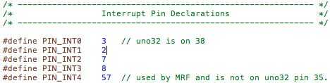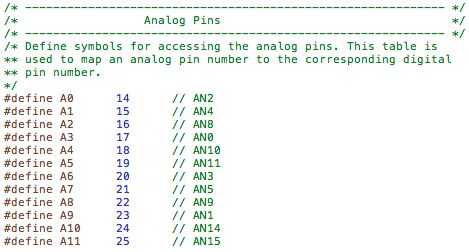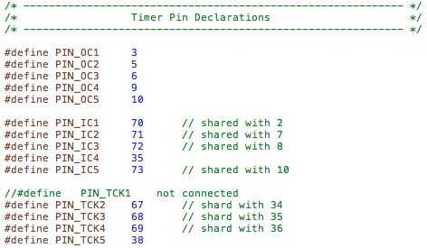 chipKIT juntas tienen un lío de señales diferentes en todos sus pines, incluyendo las líneas de comunicación como I2C, SPI y UART, entrada y salida comparan pernos, interrupciones externas, pernos de aviso de cambio y pines de entrada analógicas. los archivos de la Junta-defs les enumerará para su Junta Directiva específica **. Cuando usted rama de tutoriales y empezar a trabajar en tus propios proyectos, usted querrá tener acceso a estos archivos no sólo funciones de referencia que ya existe, pero también encontrar nuevas que no estaban allí!