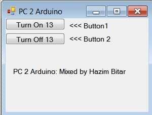 El código de Visual Basic 2010 supone tienes Form1 con 2 botones Button1 y Button2 y SerialPort1 controla. Button1 envía un 1 y Button2 envía un 0 para el puerto serie COM10 (cambiar esto para que coincida con tu PC a la configuración del puerto Arduino)