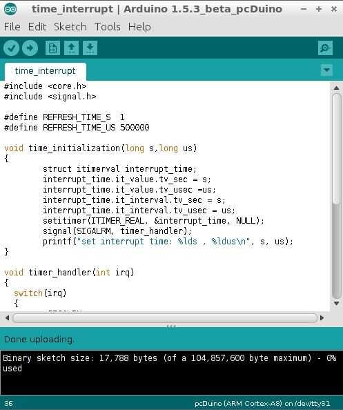 Copiar y pegar el código en el IDE de Arduino que se incluye en pcDuino: