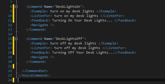 - Comando - el bloque de etiqueta es lo que referencia en el código real. Cuando nos referimos a esto más adelante en, lo llamaremos 'DeskLightsOn' después es atributo de nombre.