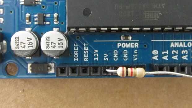 La resistencia actúa como un resistor de pull-up. Esto hará que la clavija de entrada leer alta cuando no se ha presionado el botón. Pero cuando se presiona el botón el interruptor conecta la entrada de pin a GND y la entrada Lee entonces baja. Se puede utilizar esta señal para activar cualquier tipo de secuencia que más te guste.