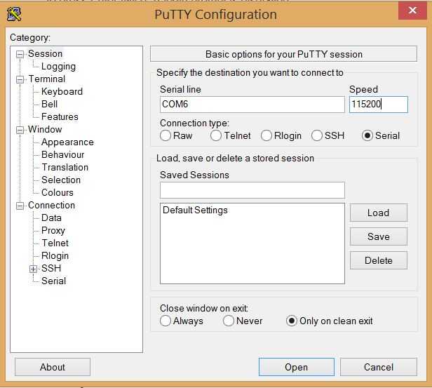 Si desea utilizar la tabla ejecutar comandos de forma remota, tienes que configurar una conexión en serie. Primero instale masilla de http://the.earth.li/~sgtatham/putty/latest/x86/pu... , ejecutar al instalador. Ampliar la conexión en el menú y seleccione la serie. Ahora en línea serie Escriba el puerto COM al que está conectado su Edison. En el campo de velocidades, tipo 115200 y seleccione el tipo de conexión serie. Haga clic en aceptar, se abrirá una conexión en serie. Presione enter, ahora pedirá para iniciar sesión. Introduzca sus credenciales. Nombre de usuario por defecto es root sin contraseña. Ahora podrás ver un puerto terminal.