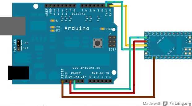 Antes de escriben materiales de reunión subir este código para el Arduino Mini Pro. Si el zumbido se hace perfectamente este código funcionará. Si no se debe modificar el código al final. Al programa Arduino Mini utilicé un Arduino Uno que fue fijado en 3.3 voltios.