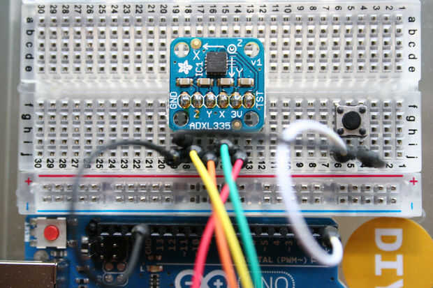 Cuidado con: El poder de la ADXL335 es 3.3V. Conectarlo a 5V matará él.