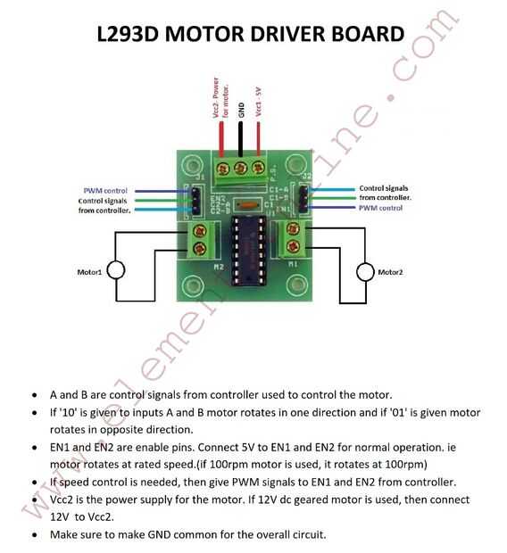 Para conectar las tablas L293 D motor como pi, harían falta alambres de puente. Ahora Conecte el motor al l293 como se muestra en imagen. Pin PWM conectar 5V de la pi (podremos usar PWM para variar la velocidad del motor, pero ahora mantendría alto)