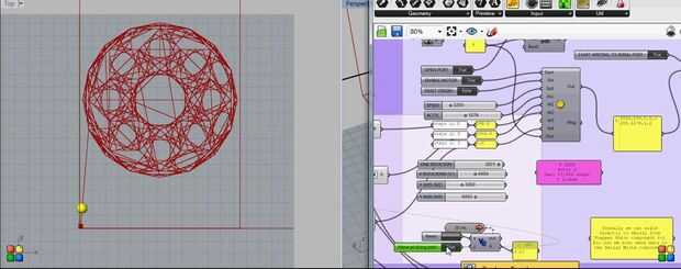 (Utilizados en esta etapa los componentes: paneles, punto de construir, pt 2, Brep Wireframe, patrón, curva de la caja)