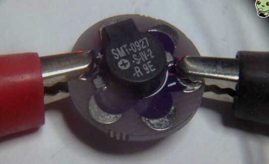 El zumbador está montado sobre un tablero redondo pequeño unos 2 cm en el centro. Su pequeño tamaño debe ser útil para un montón de proyectos.