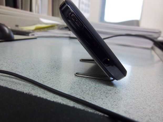 este es un proyecto muy fácil para hacer un móvil teléfono / Tablet / Phablet pararse usando sólo un clip de papel. El teléfono puede realizarse en modo paisaje o retrato. El teléfono que he utilizado para probar este fue Motorola Defy es un teléfono