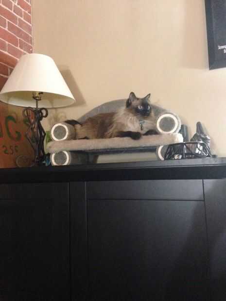 Sushi (la hembra) tipo de odia Stormy (el hombre) por lo que comer en lugares separados y con el tiempo tempestuoso ha cobrado la parte superior del ropero y tiene su comida y lo que nos referimos como "trono" en la parte superior. De vez en cuando volver a arreglar sus muebles, que él no parece importarle.