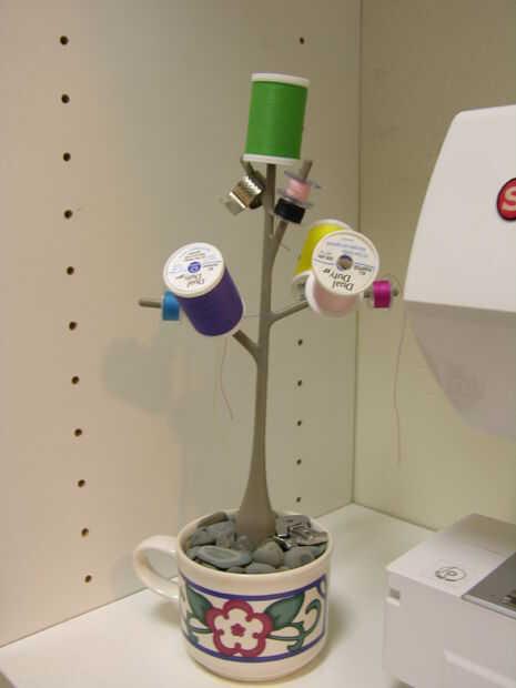 Hice esta costura carrete y bobina estante de esquina con las siguientes cosas que no tienen ningún propósito original más basura de la casa: