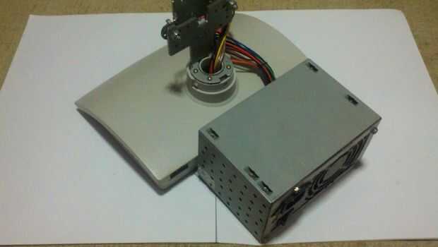 Perno de la PSU de 150W en el marco de la L y la parte plastica de la base de LCD a la placa base de LCD, luego enrosque los cables a través de sus respectivos agujeros para completar la unidad base de LCD