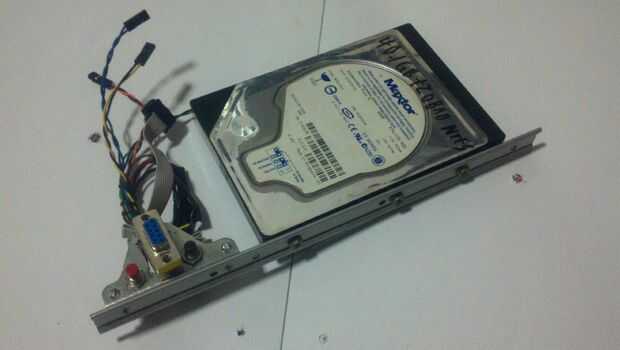 El panel frontal del triángulo fue creado de un pedazo de metal, los leds del indicador de un termo eléctrico (1 rojo, 1 azul), los 2 botones rojos de un salpicadero de coche roto (1 color negro con un marcador permanente) y el puerto serie de una antigua tarjeta PCI roto, pls disculpa improvisados que empalma con cinta aislante. Por cierto, el carril del metal es de una bandeja de teclado deslizante roto.