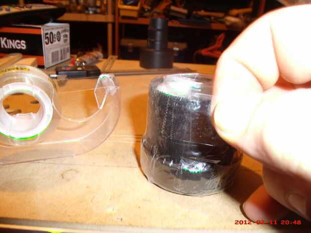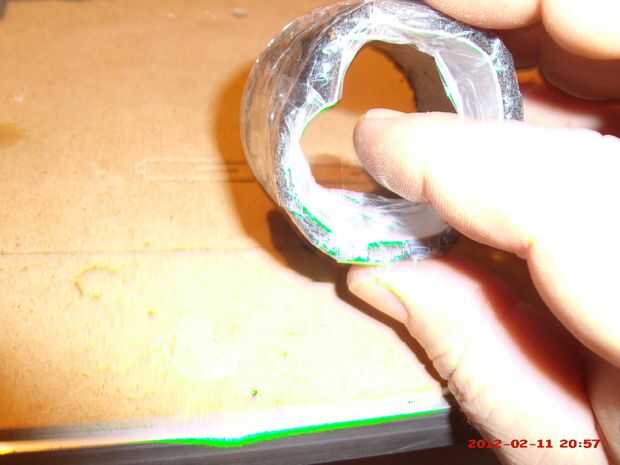 Empezar a reemplazar la envoltura de plástico, o usar algo como cocina sandwich wrap, reemplazar el cartón del anillo interior del cepillo, o cortar un trozo para adaptarse, esto es importante para mantener las cerdas en su lugar. Utilice cinta adhesiva para sellar completamente el exterior del cepillo. En el siguiente paso.