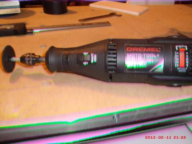 Decidir cuánto hacer, tiene que cortarse en orden de su parte llegar a su material. Decidí cortar mío en 1/8 de pulgada debido a que la parte superior es ajustable. Usted puede cortar tanto como un 1/4 pulgadas pero no más. No quiero establecer las brocas a lejos de la del router, cuanto más lejos hacia fuera la menos precisión con brocas pequeñas. Tomar la herramienta dremal con un disco de corte de acero, corte alrededor del cepillo hasta la mitad en el cepillo de corte lento, quiere fundir las cerdas a los anillos interiores y exteriores. Repita este paso y corte en el pincel, en este punto que estará cortando el anillo interior. Recuerde el corte lento, que necesita derretir todo juntos. Si utiliza una sierra que tiene dientes en la hoja que va a sacar todas las cerdas y arruinar su proyecto. Verdadero cuidado con el pincel en este punto, algunas de las cerdas no pueden han consolidado en el proceso de fusión. Y el siguiente paso.