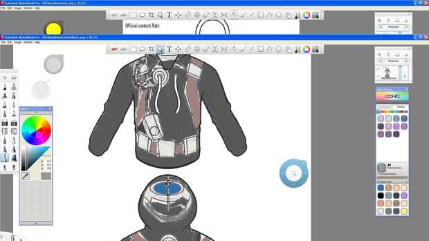 Todavía estaba tratando de conseguir la sensación de ' Sketchbook ' por lo que no experimentar con capas o limpieza de las líneas de lápiz. Acabo de hacer un relleno básico con los colores de la paleta de diseño.